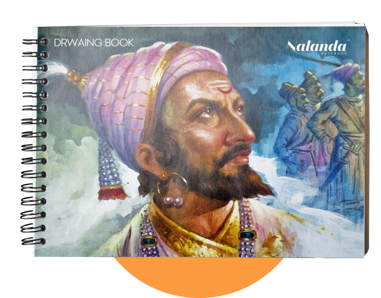 Our drawing book beautifully illustrated cover depicting an iconic historical figure, likely representing Chhatrapati Shivaji Maharaj, known for his valor and leadership. The artwork is vibrant, capturing the essence of a revered warrior with intricate details in his traditional attire.
